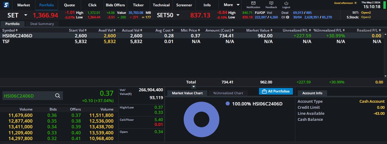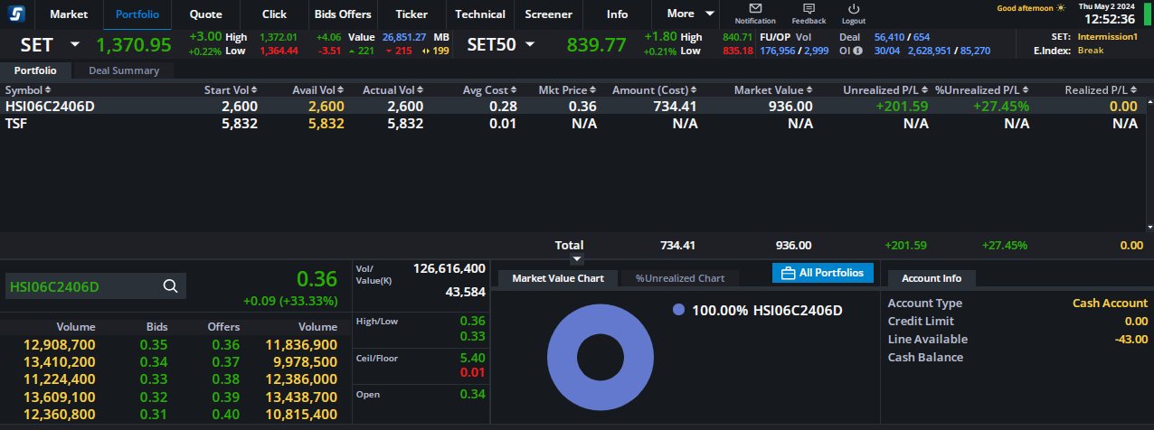 HSI ที่ถืออยู่ วันแรกก็กำลังได้กำไร บวก 27% ก่อนแล้ว ส่วนDWไทย ผันผวนไซต์เวย์ ก็รอบคอบหากจะเทรด DW ไทย ในช่วงนี้