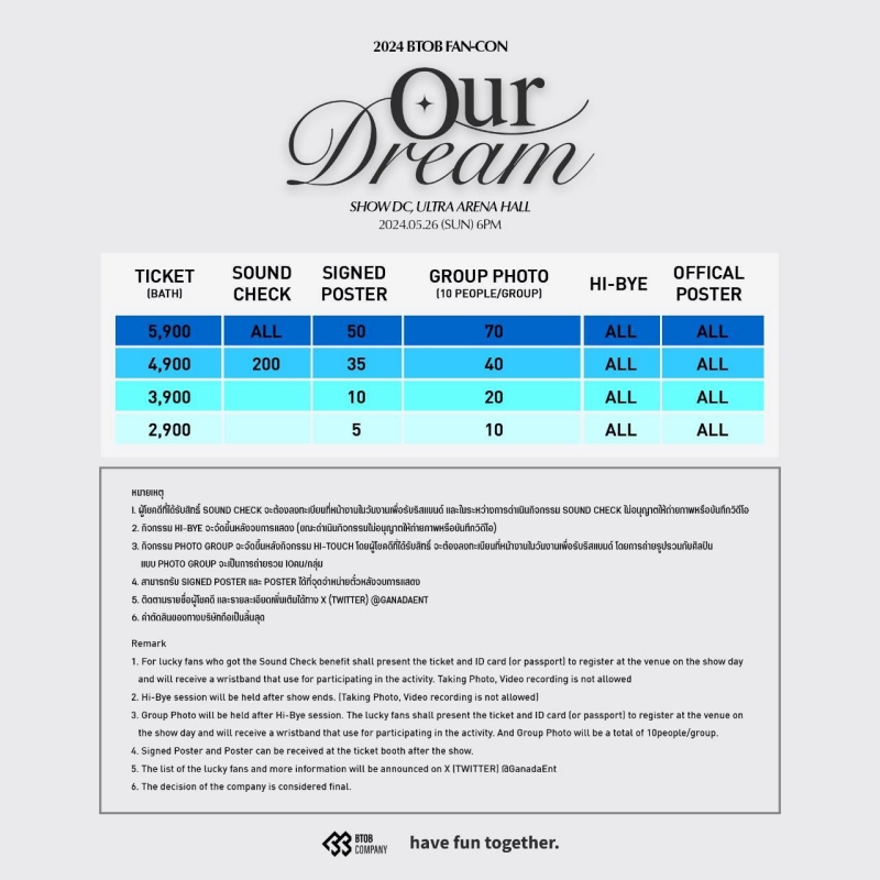 2024 BTOB FAN-CON [OUR DREAM] IN THAILAND วันอาทิตย์ที่ 26 พฤษภาคม 2567 ณ SHOW DC , Ultra Arena Hall