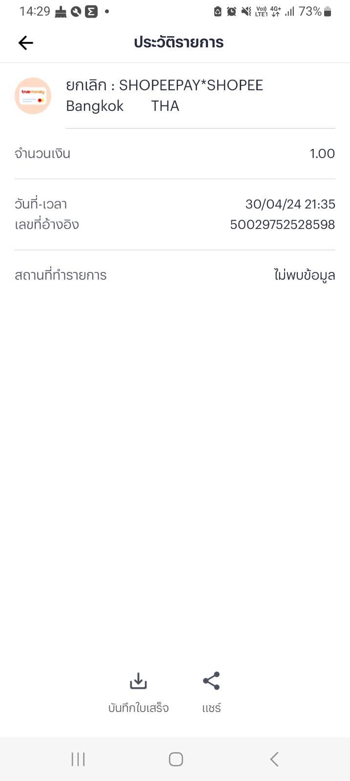 ขอคืนเงินshopeeเเต่คืนมาบาทเดียว