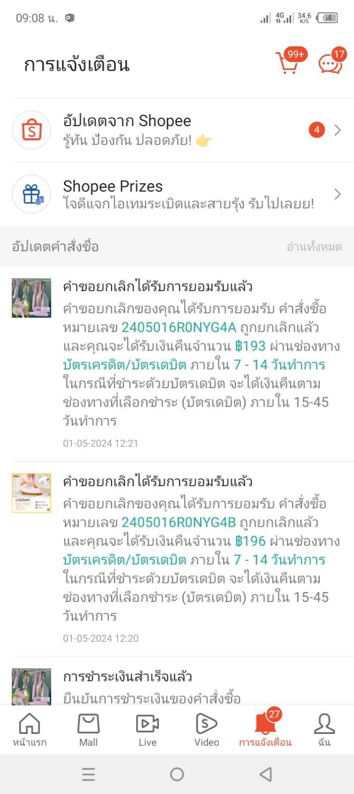 ยกเลิกสินค้าshopeeแล้ว เงินคืนเข้าwecardตอนไหน
