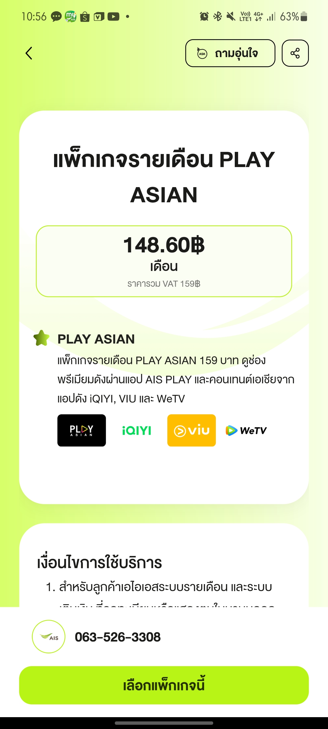ทำไมสมัครแพ็คเกจ AIS Play Asian รายเดือน ไม่ได้ กด *678*159#