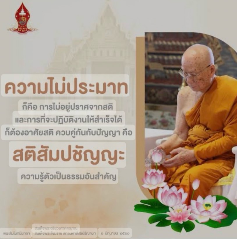 อปฺปมาโท จ ธมฺเมสุ (อัปปะมาโท จะ ธัมเมสุ)