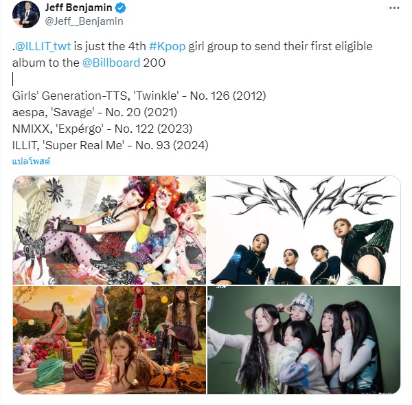 ILLIT กลายเป็นเกิร์ลกรุ๊ปวงที่ 4 ที่ส่งอัลบั้มเดบิวต์เข้าชาร์ต Billboard200 ได้สำเร็จ