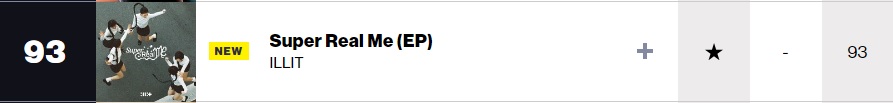 Congratulations to ILLIT who make debut on the Billboard200 for the first time with 'Super Real Me' enters at No.93 this week