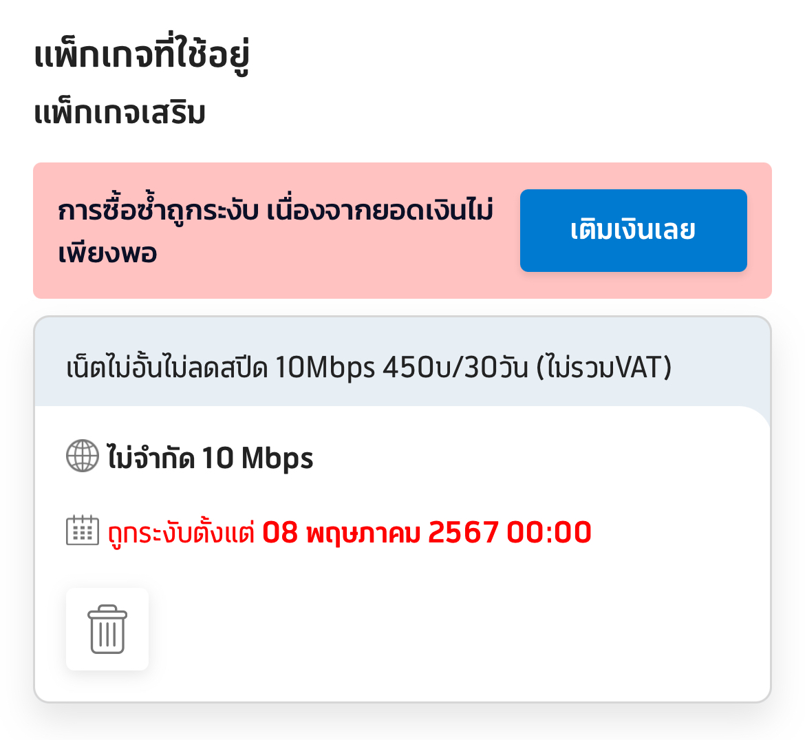 ปกติก่อนหน้านี้เติมเงินไว้มันก็ต่ออัตโนมัติ พอเติมเงินรอบนี้มันไม่มีแพ็กเก็จนี้แล้ว