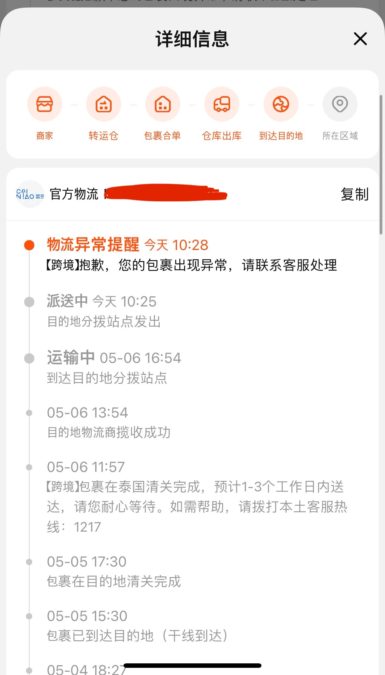 Taobao สั่งของมาถึงไทยแล้วขึ้นแบบนี้ 【跨境】抱歉,您的包裹出现异常,请联系客服处理