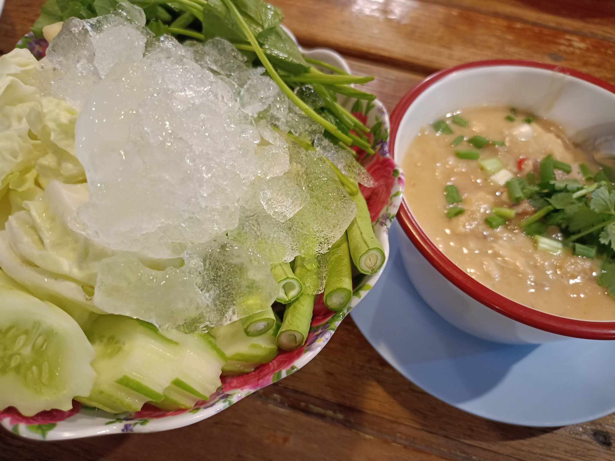 หลนปูที่มาพร้อมเนื้อปูจัดเต็ม ผักเคียงก็สดครับ