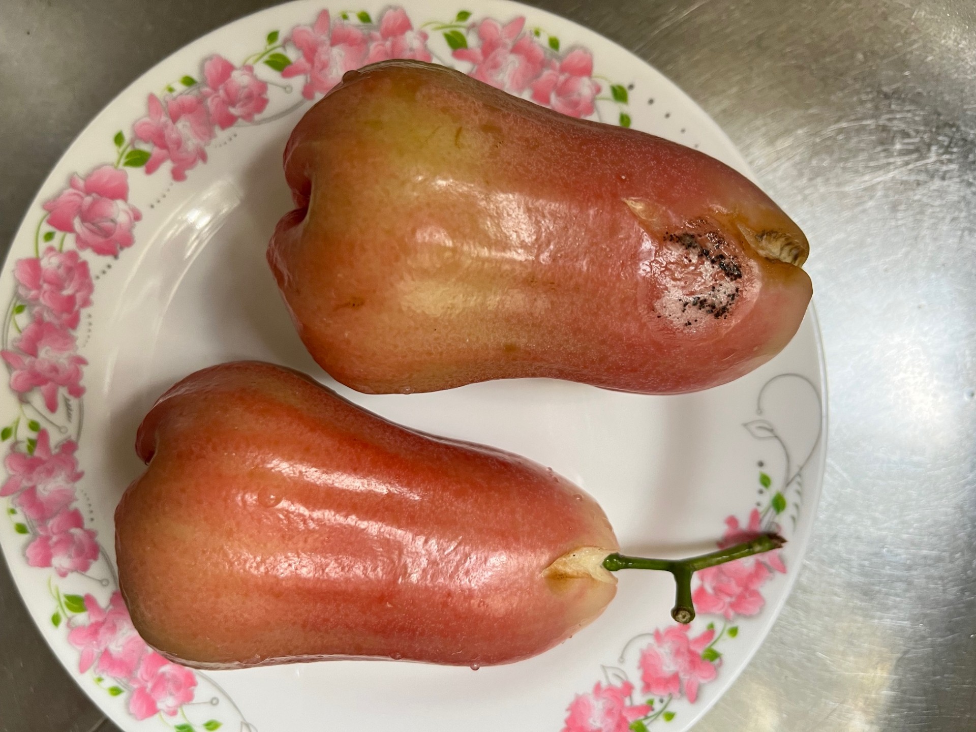 เมื่อเช้าเก็บชมพู่ที่ห่อไว้ จากต้น แล้วเจอราที่มีลักษณะสีดำๆ ที่ขึ้นบนลูกชมพู่แบบในรูปนี้ เลยไม่แน่ใจว่าเป็นราประเภทเดียวกันไหม ?