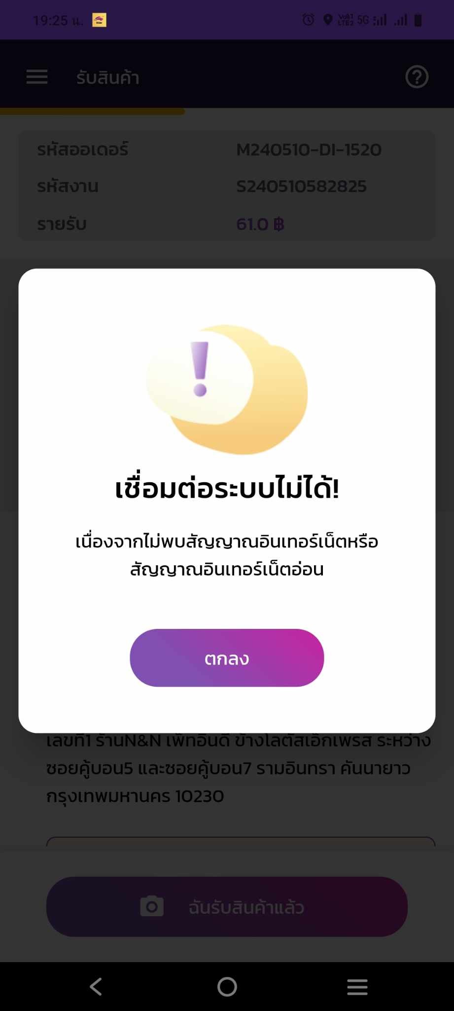 จะเป็นแค่กับเครื่องที่ใช้วิ่งออเดอร์ประจำ พอถึงเวลาจะปิดงานก็ขึ้นตามรูป พอไปล็อกอินเครื่องอื่นไม่เป็นอะไรเลย ปิดงานได้ปกติ พอลองใช้เครื่องที่ใช้วิ่งประจำ ทำไม่ได้ ซึ่งเป็นมาได้ 3 วันแล้ว ไม่รู้จะแก้ยังไง รอเจ้าหน้าที่ก็ ไม่ติดต่อกลับ