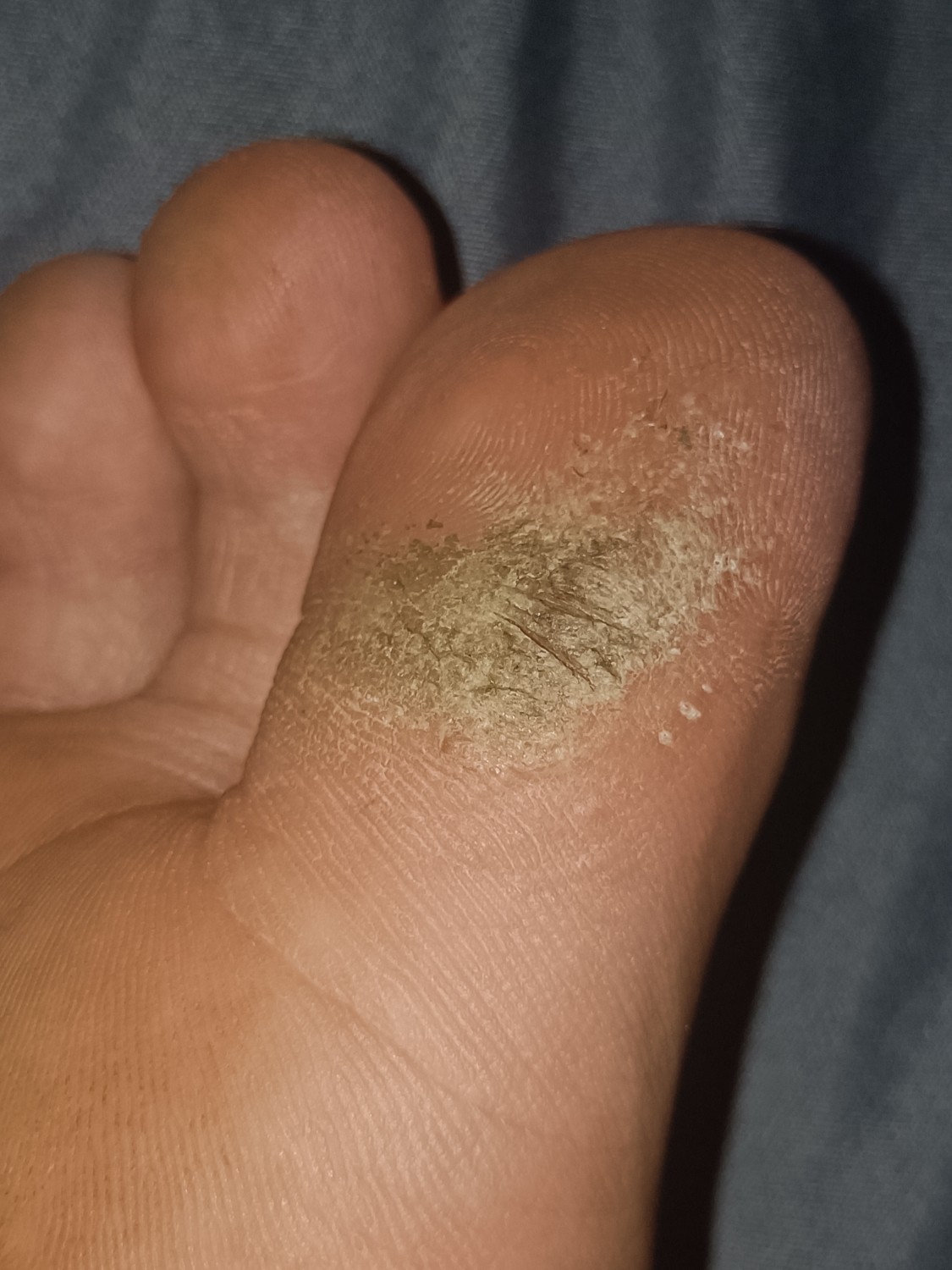 หัวแม้เท้าบางส่วนเป็นหนังกำพร้าที่ตายแล้ว แต่ส่วนที่เหมือนรอยบาด ไม่เข้าใจว่าเกิดขึ้นได้ยังไง แล้วพอแก้ด้วยวิธีไหนได้บ้างครับ