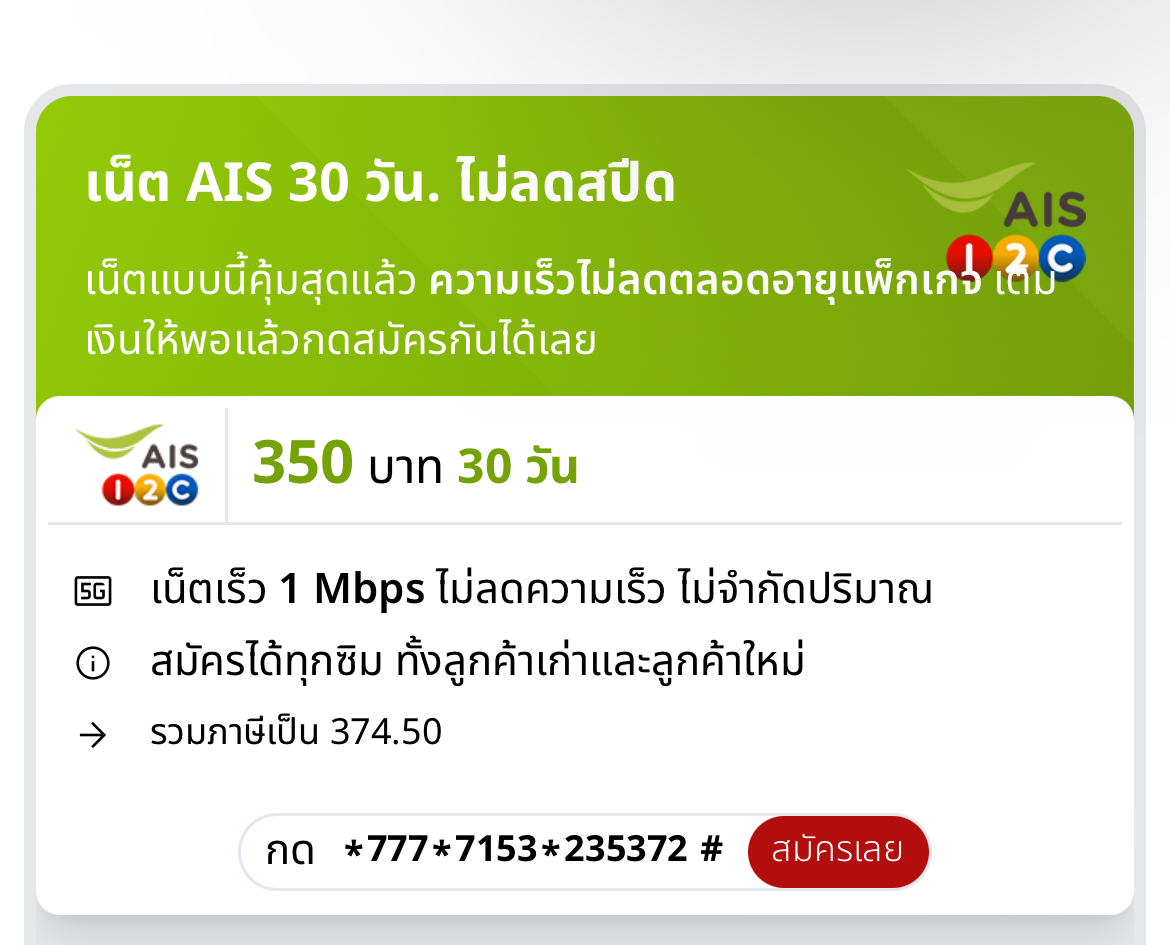 โปรเน็ตais ทีมีคำว่าใช้ต่อเนื่องได้6เดือน