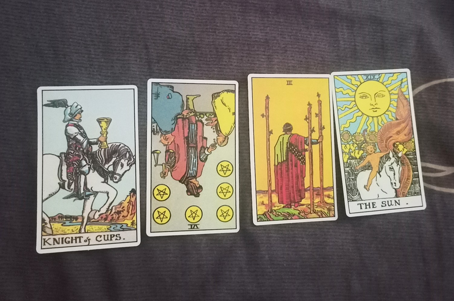 1.THE TWO OF CUPS2.ACE OF SWORDS3.THE TWO OF WANDS4.ACE OF CUPS5.THE THREE OF SWORDS6.The Emperor7.THE SEVEN OF SWORDS8. THE FIVE OF WANDS9. The Chariot10.THE PAGE OF PENTACLES รบกวนแปลความห