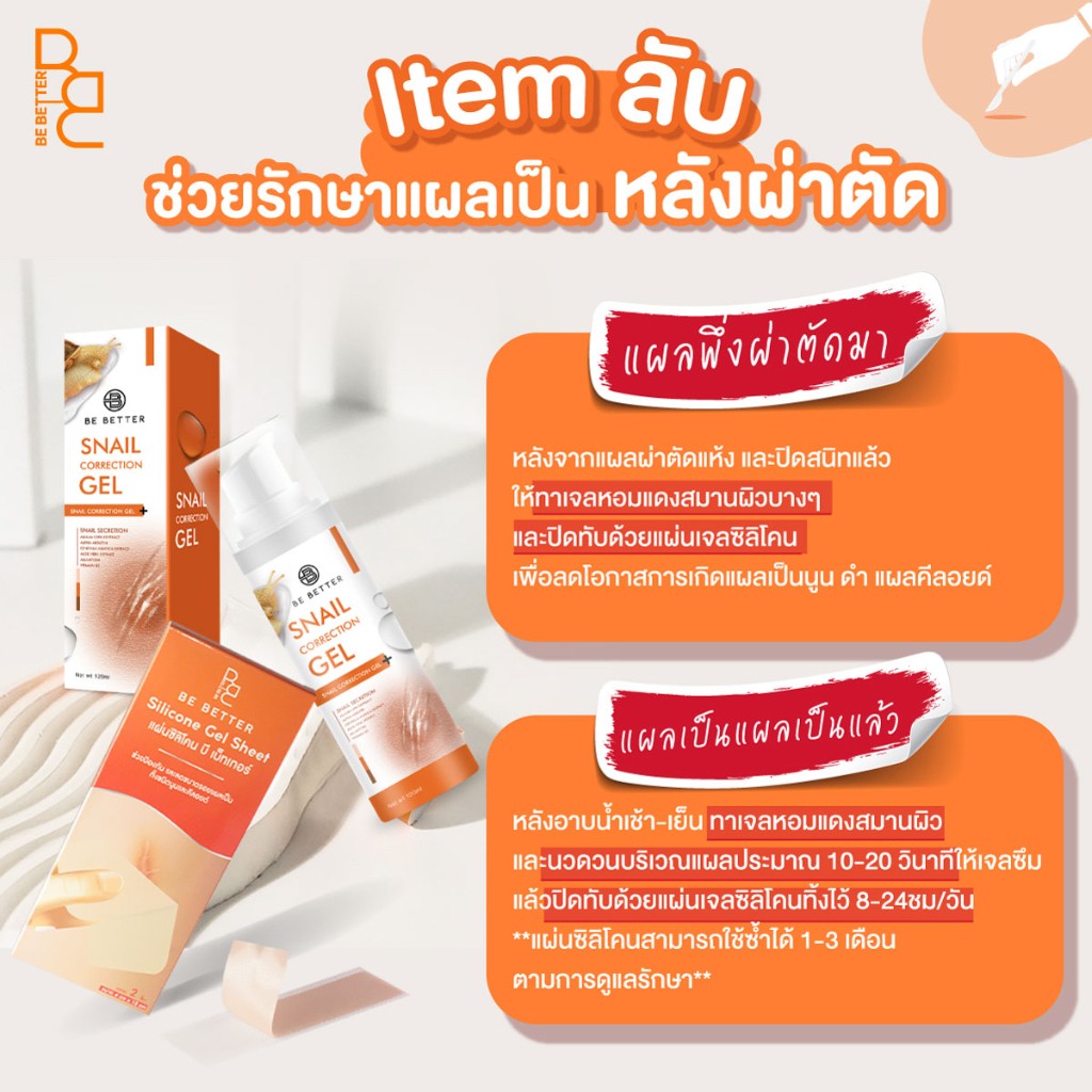 🩹🩹 แผ่นซิลิโคนเจล แปะลดรอยแผลเป็น Be Better 1กล่อง 2 แผ่น ลดรอยแผลเป็นนูน แผลคีลอยด์ แผลผ่าตัด คีลอยด์สิว 🩹🩹