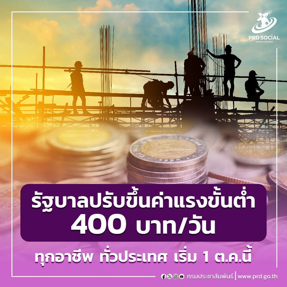 สวัสดีปีใหม่ 2025 และนี่จะเป็นวันที่ "ค่าแรงขั้นต่ำ" ใหม่ สูงสุด 400 บาท จะเริ่มมีผลบังคับใช้