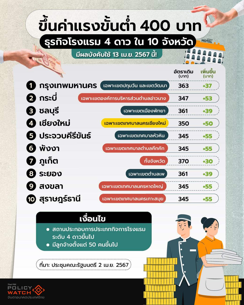 เคาะแล้ว ค่าแรงขั้นต่ำ 400 บาท เฉพาะ 4 จังหวัด เริ่ม 1 ม.ค. 68