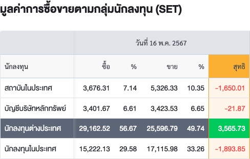 Sinthorn Summary 17/5/2567 : ต่างชาติซื้อสุทธิ 3,565.73 ลบ.