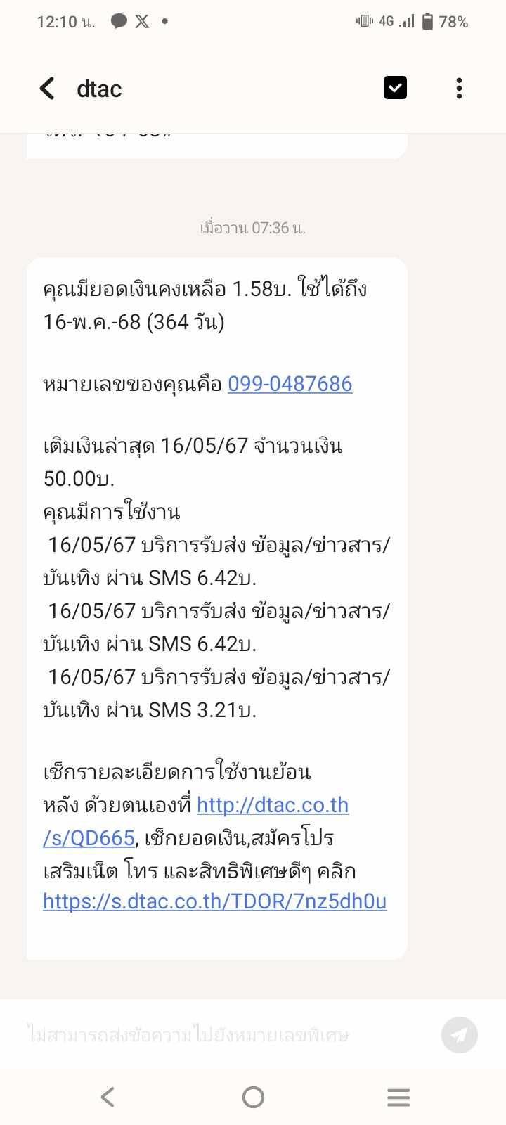 รบกวน Dtac ด้วยครับ ข้อความสั้นเชิญชวนให้ต่ออายุซิมเติมเงิน