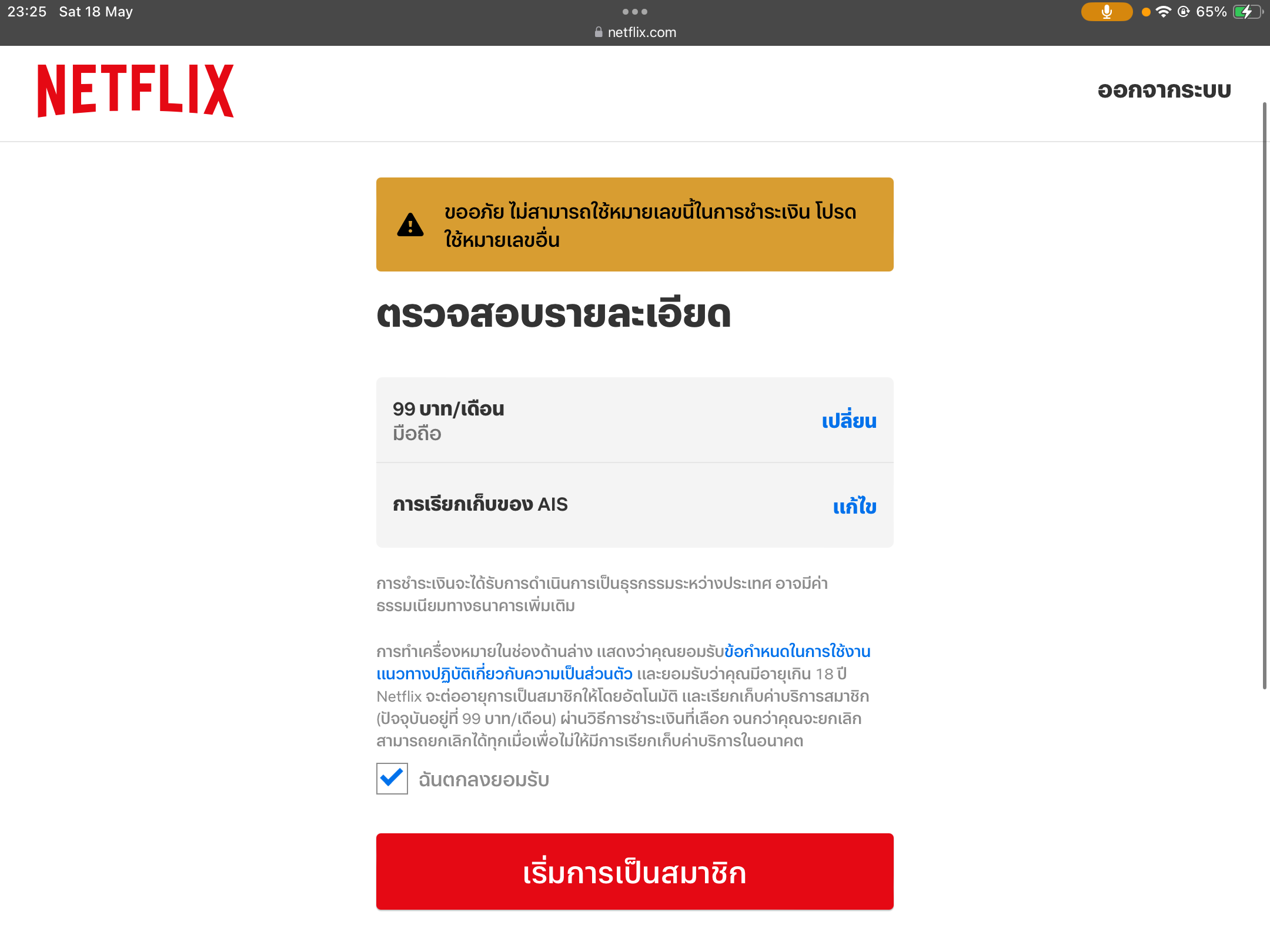 จ่ายค่าบริการ netflix จากเบอร์ Ais เติมเงินไม่ได้ แก้ไขยังไงดีครับ สอบถามเพื่อนๆที่เคยเจอปัญหาเดียวกันครับ