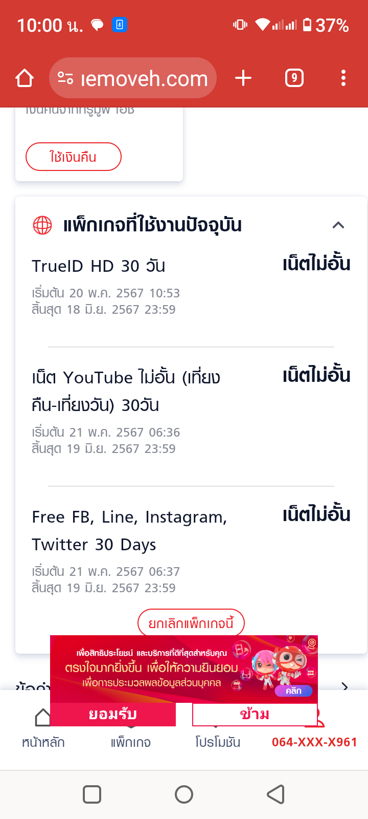 โดนหักเงินในซิม ทั้งที่เติมเน็ตแล้ว ทรูมูฟเอช