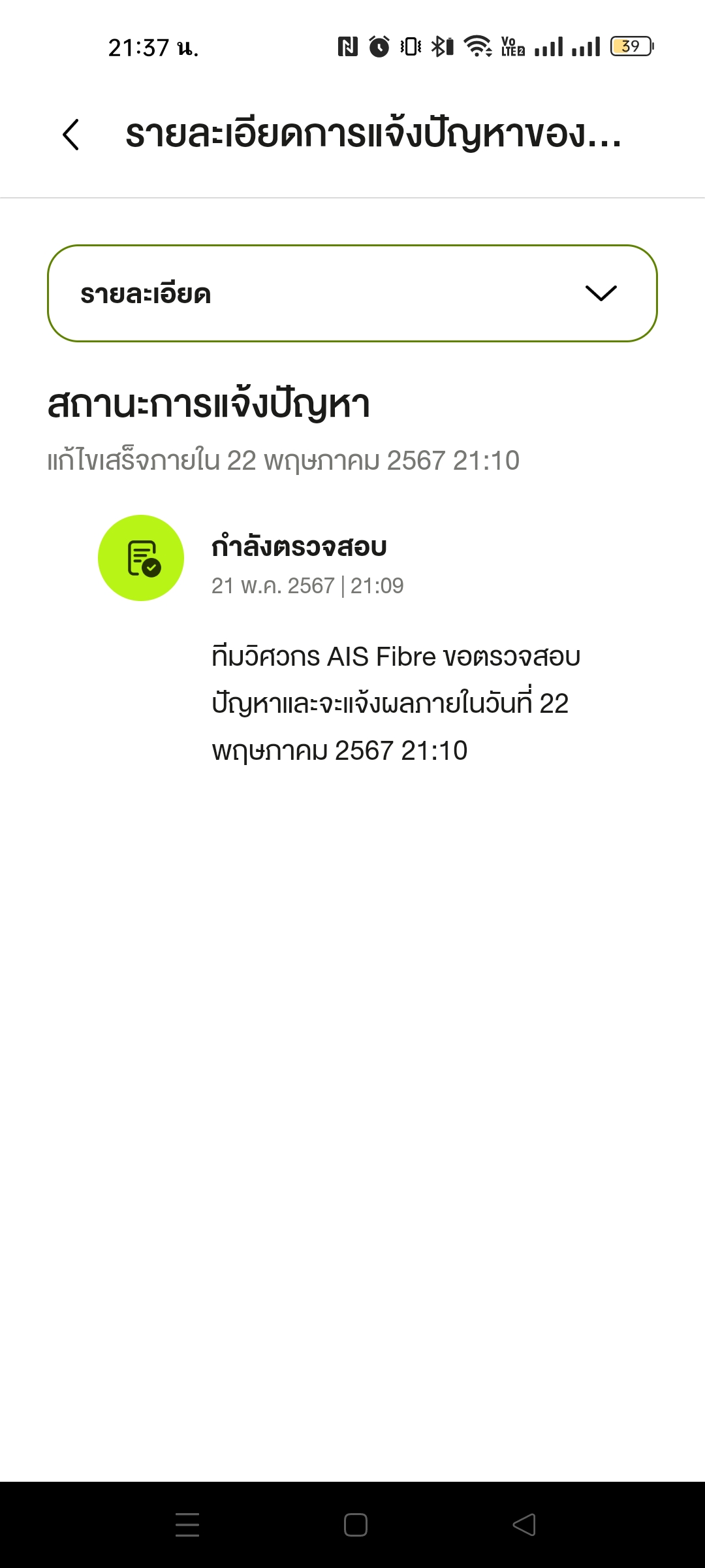 วันนี้สัญญาณ AIS Fiber เราใช้งานไม่ได้ เลยติดต่อไปที่เบอร์ที่หาได้จากในอินเตอร์เน็ตเพราะคิดว่าน่าจะมีคนประสานงานให้เร็วกว่าแจ้งปัญหาผ่านแอปพลิเคชั่น พอโทรไปมีพนักงานรับสายเราก็แจ้งปัญหาการใช้ไป ซึ่งเบ