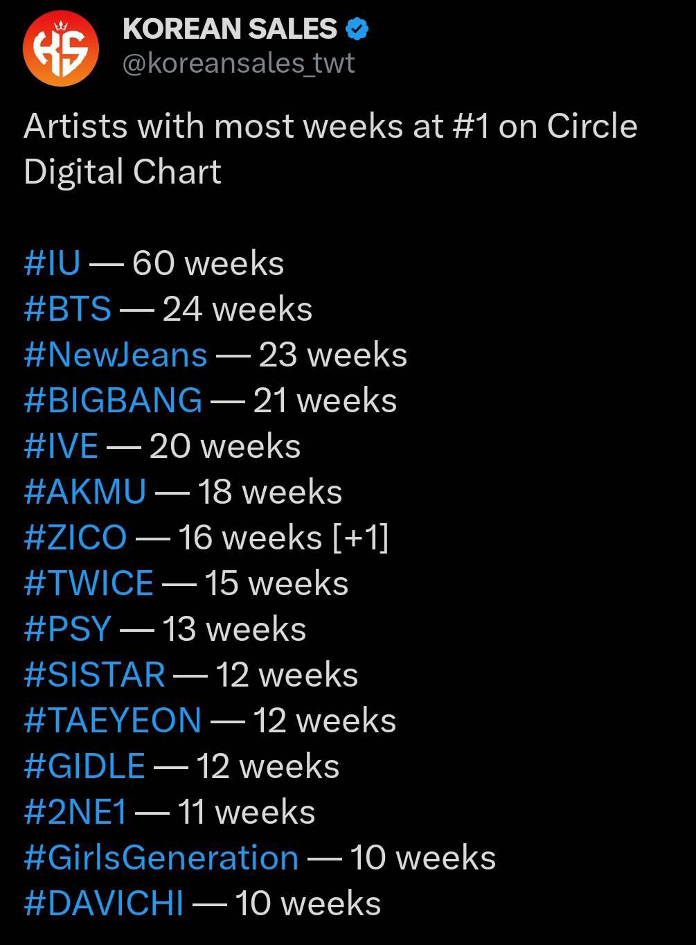 [K-POP] Artists with most weeks at #1 on Circle Digital Chart