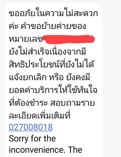 พอดีจะย้ายค่ายพอขอรหัสย้ายค่ายไปก็มีข้อความตอบกลับว่า