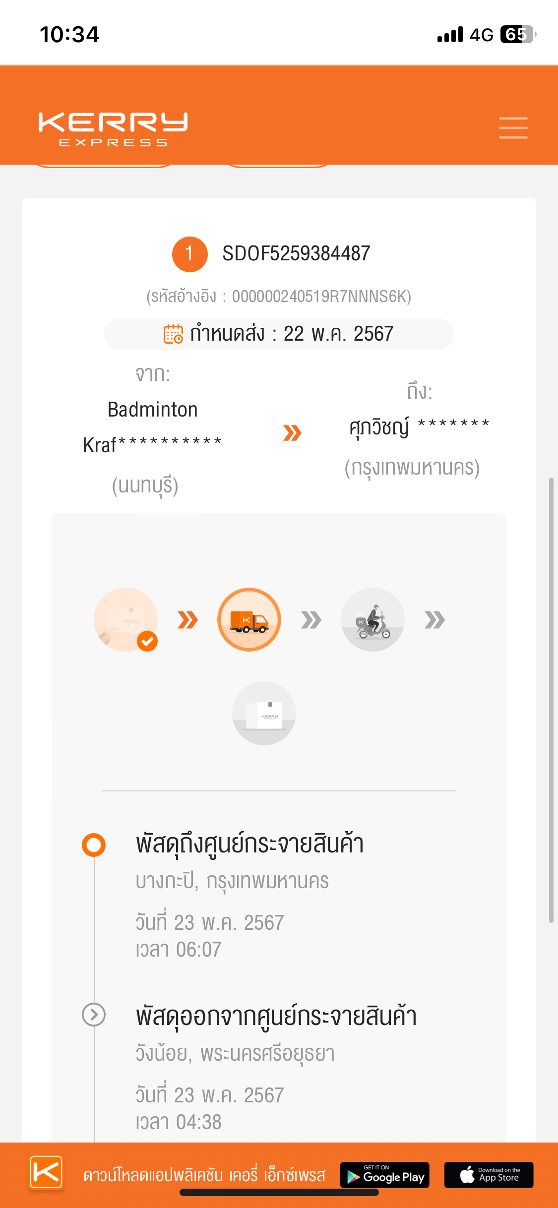 ใครรู้สึกเหมือนกันบ้างว่าหลังๆ มาการบริการ Kerry ช้ามาก พัสดุส่งจากประชาชื่น เขตกรุงเทพที่ใกล้รอยต่อนนทบุรีขนาดนี้ แต่ทำไมส่งของช้าจัง ของมาถึงบางตลาด นนทบุรี ซึ่งก็คือปลายทางแล้ว ตั้งแต่ตี 2 กว่าๆ เช