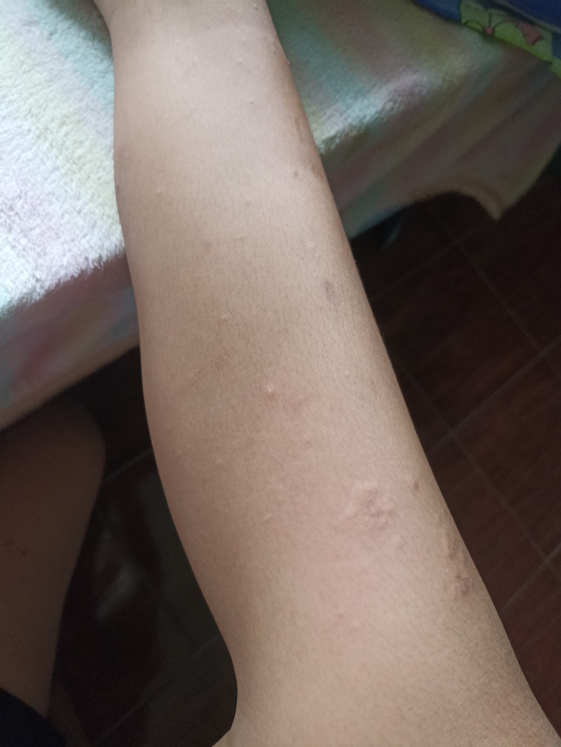 เรามีปุ่มคล้ายๆโดนยุงกัด เป็นเต็มไปหมดเลยค่ะ ขึ้นทั้งเเขน เเละ ขา เราคันมากกกกก เราก็เกลา ยิ่งเกาก็เห็นปุ่มชัดขึ้นค่ะ เกี่ยวกับว่าเราใส่เสื้อคลุมชื้นเเล้วขี่รถต