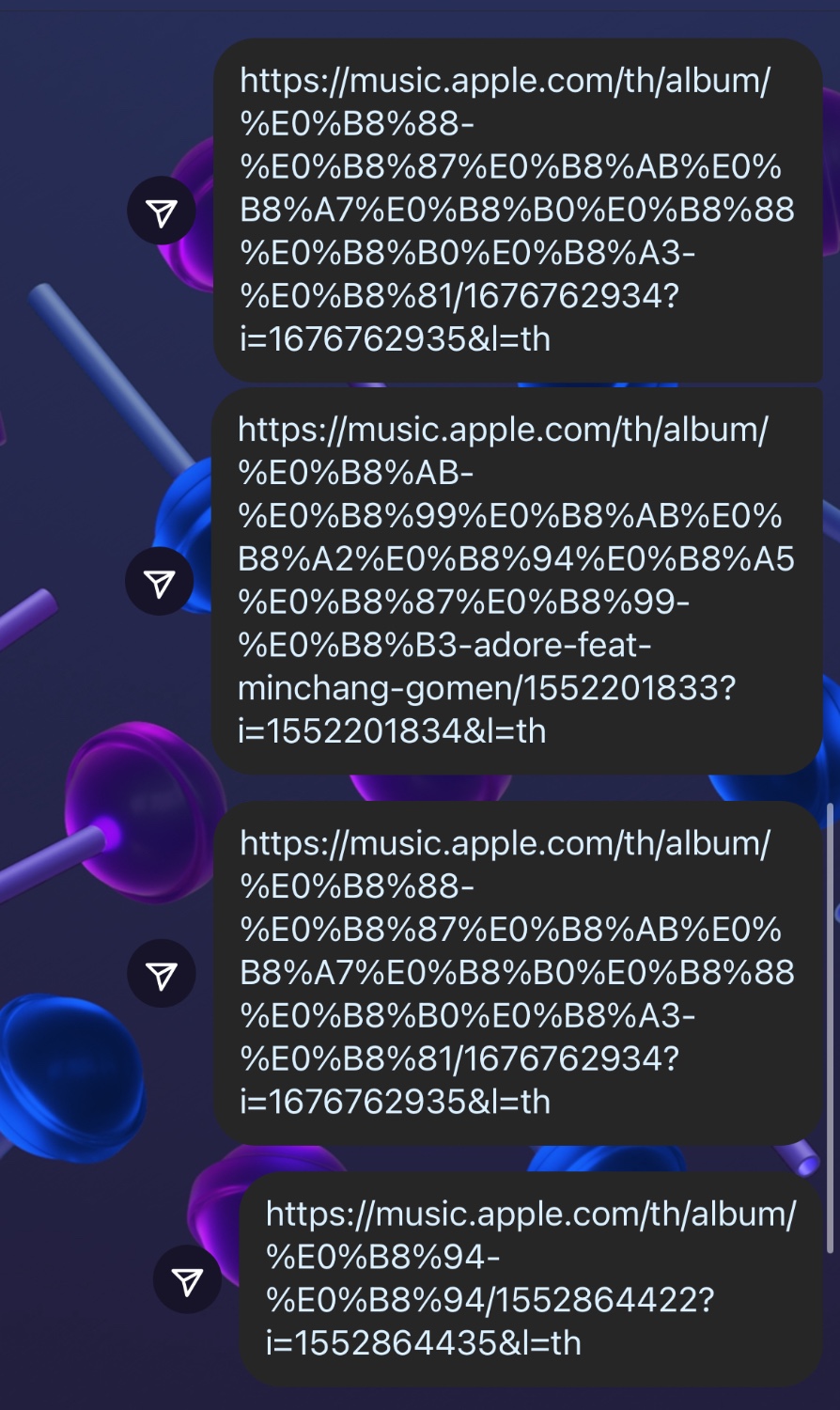 คือเวลาจะส่งเพลงให้เพื่อนจากapple musicมันชอบขึ้นเป็นลิ้งคะปกติมันจะขึ้นเป็นโปรไฟล์เพลง