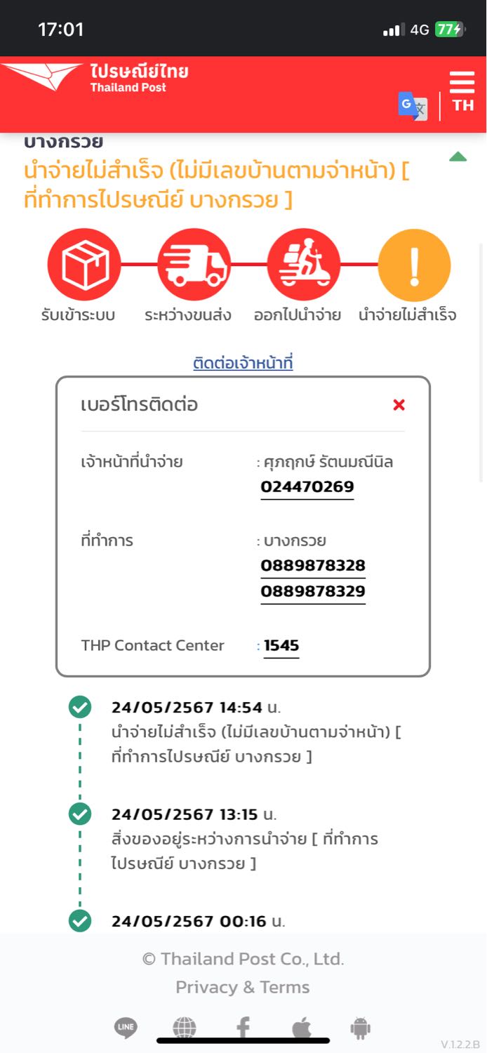 ขนส่งไปรษณีย์ไทย ems ขึ้นว่านำจ่ายไม่สำเร็จติดต่อผู้รับไม่ได้ทั้งๆที่ยังไม่โทรหาผมเลย