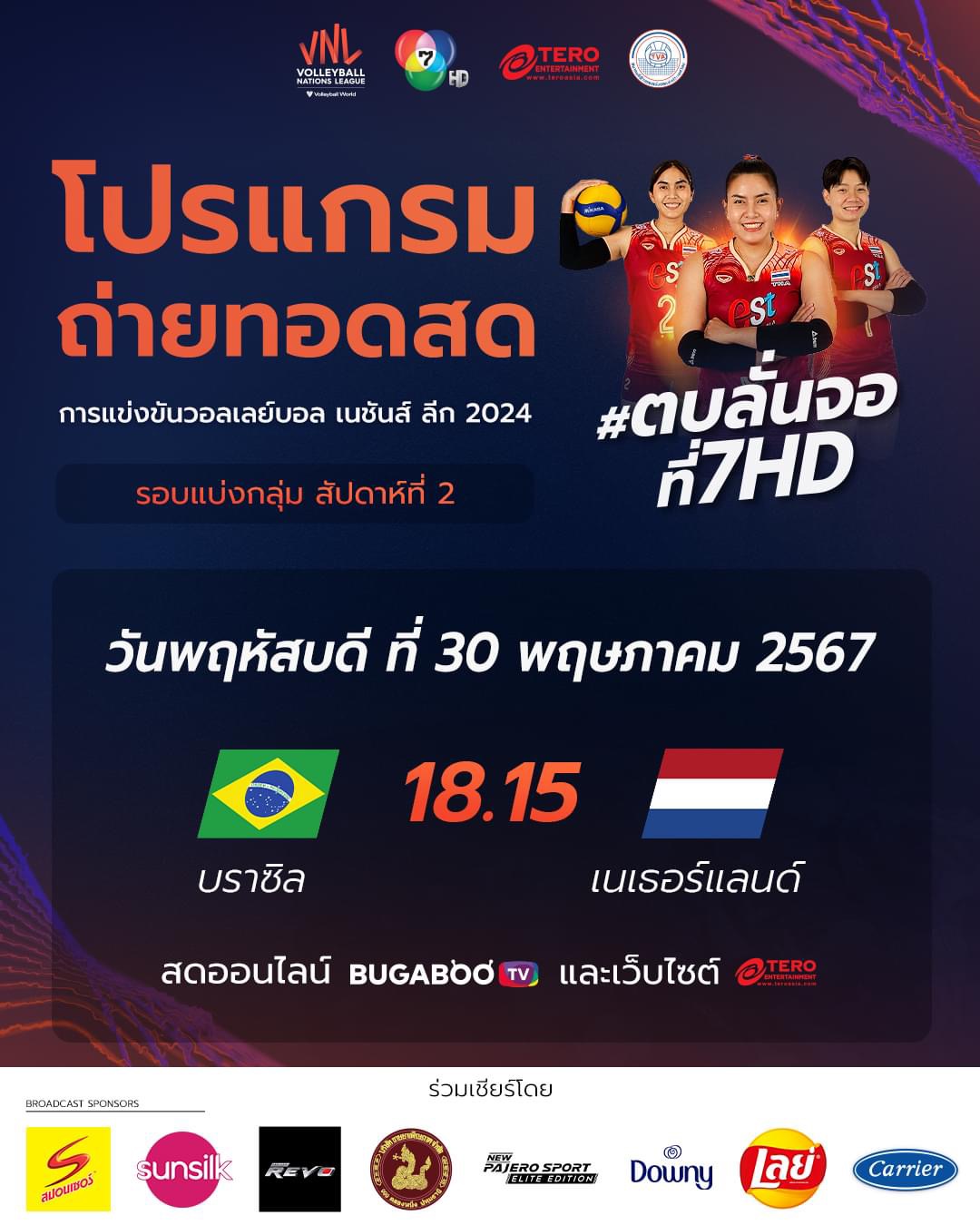 โปรแกรมถ่ายทอดสด VNL 2024 วันที่ 30 พฤษภาคมนี้