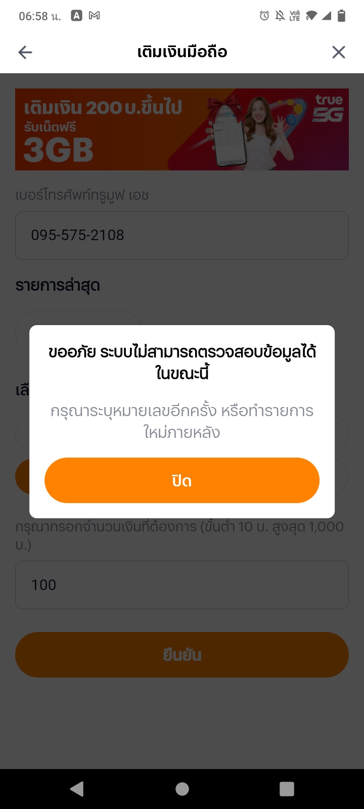 เติมเงินเข้าเบอร์ทรูไม่ได้ทำไงดีคะ