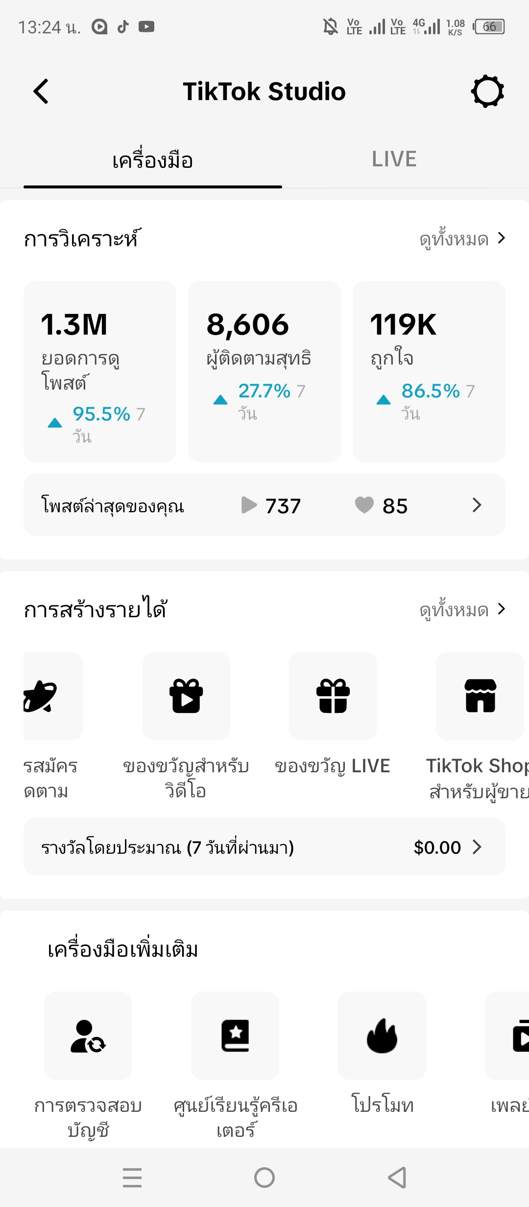 ตี๊กต๊อก ของผมทำไมครีเอเตอร์ไม่มีครับ