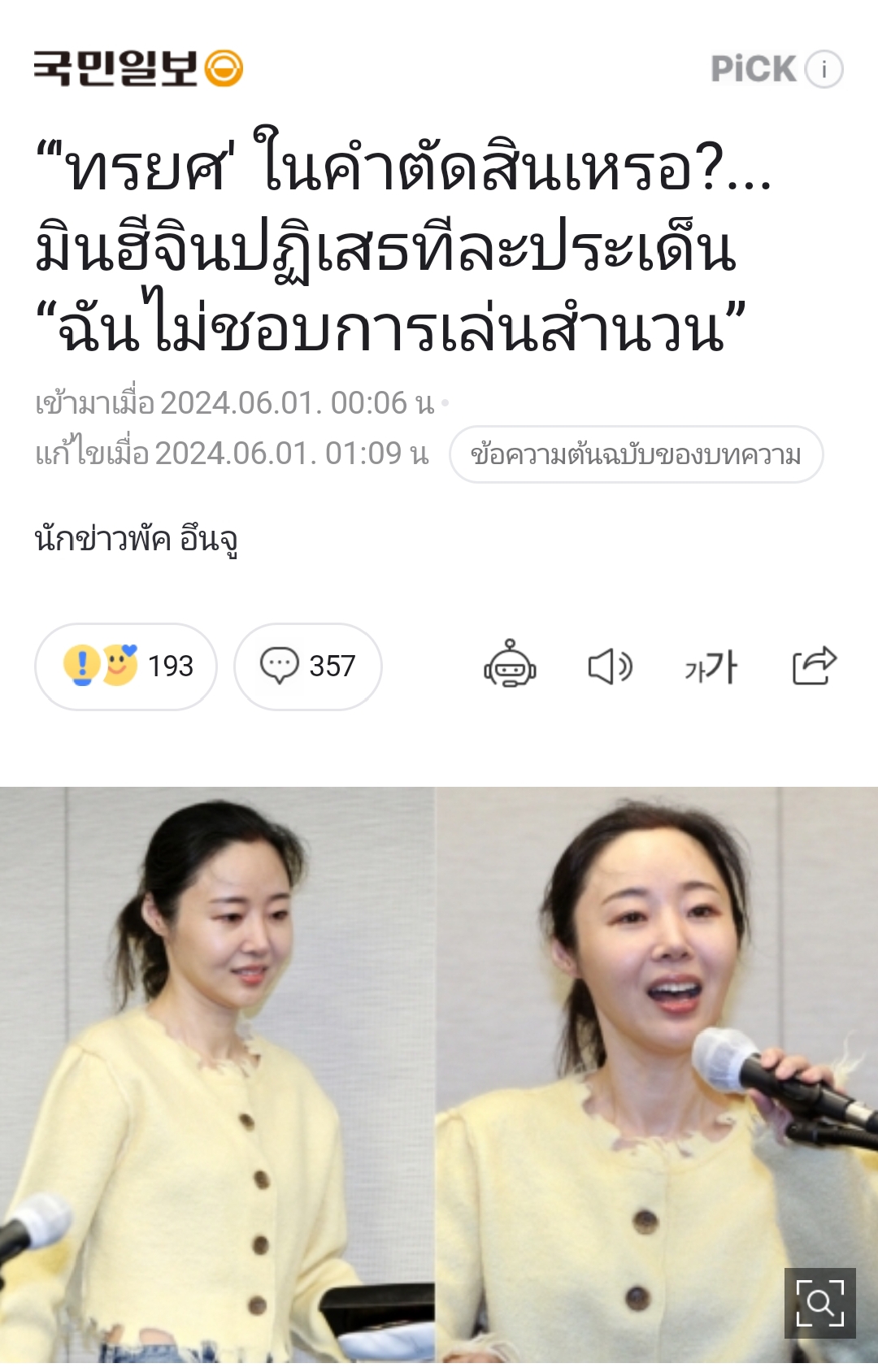 เกาหลีไม่ได้เข้าข้างมินฮีจินกันอย่างที่หลายๆคนคิด.. ท็อปเม้นจากกระทู้ข่าวที่คนบวกระดับ 1,000+ มีความคิดคล้ายกับคนไทย