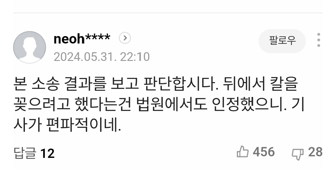 ถ้าให้เราตัดสินโดยดูผลคดีนี้ แม้แต่ศาลยังยอมรับว่าเขาพยายามแทง Hybe จากด้านหลัง บทความนี้มีอคติ