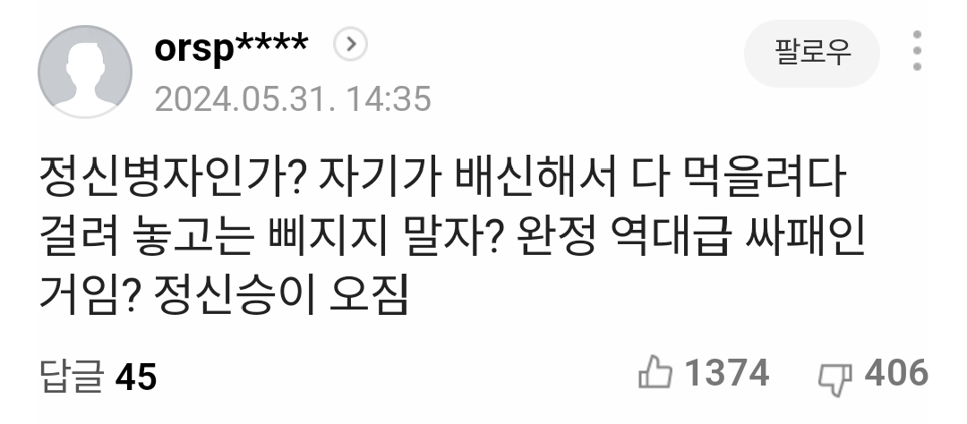 TOP COMENT ได้รับการกดบวกระดับ 1,400+ ยอดกดบวดเรียกว่ามากกว่าเม้นในกระทู้ pann หรือ the qoo ที่คอยเชียร์มินฮีจิเสียอีก