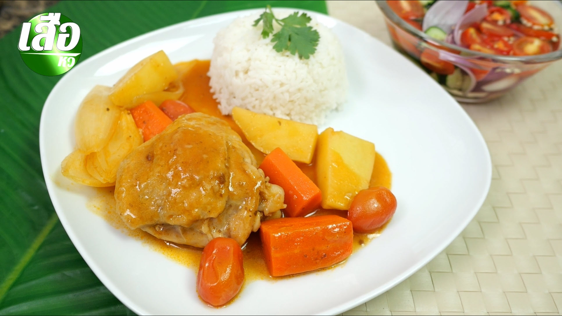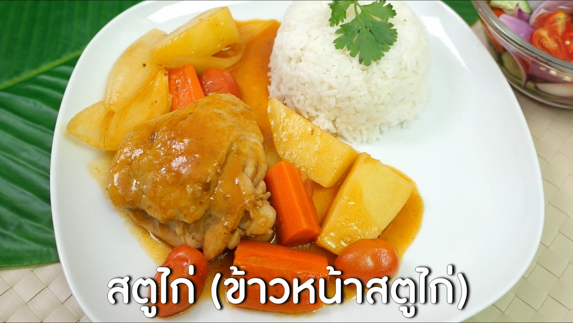 สตูไก่ (ข้าวหน้าสตูไก่) หอมๆ เนื้อไก่นุ่มๆ ใส่หอมใหญ่และมันฝรั่ง พร้อมสูตรน้ำจิ้ม