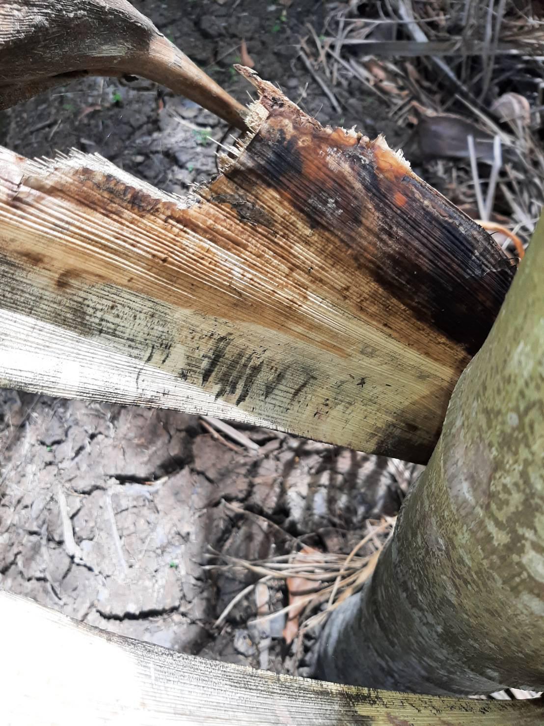 เเต่ล่ะกิ่งมี3ใบ ลำต้นเป็นสีขาวๆเหมือนจะมีกาบด้วย สูงประมาณ160ซม.