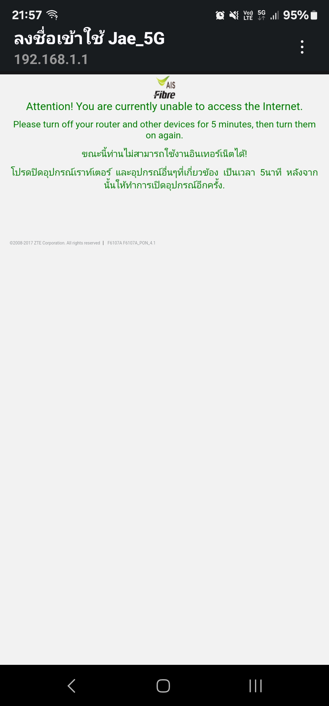 มีสัญญานปกติแต่ไม่มีinternet เป็นตั้งแต่วันที่4