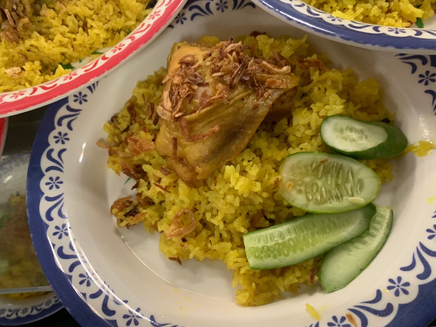 ข้าวหมกไก่ เป็นอาหารจานเดียวที่ได้รับอิทธิพลจากอาหารอินเดียและมุสลิม มีรสชาติหอมเครื่องเทศ ข้าวนุ่ม และไก่หมักเข้าเนื้อ แต่วิธีทำค่อนข้างยากไปนะสำหรับป้า ซื้อกินน่าจะดีกว่า แต่ละร้านเท่าที่กินมารสชาติ