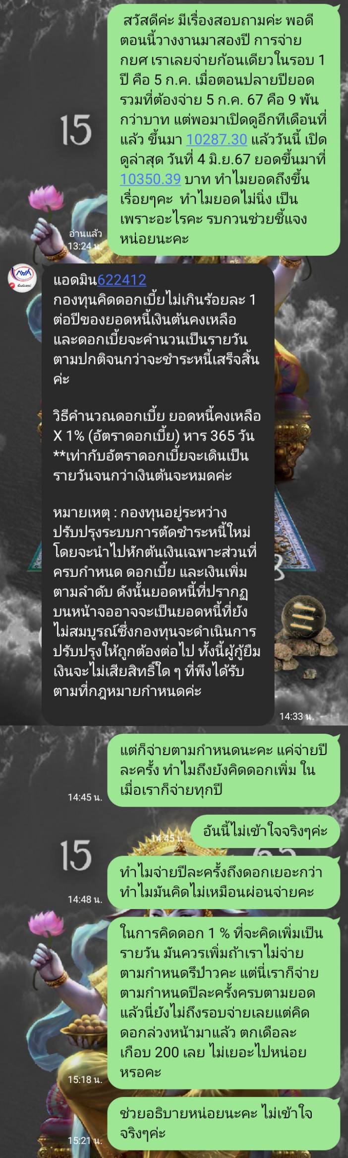 สวัสดีค่ะ มีเรื่องสอบถามค่ะ พอดีตอนนี้ว่างงานมาปีกว่า การจ่าย กยศ เราเลยจ่ายก้อนเดียวในรอบ 1 ปี คือ 5 ก.ค. ของปีที่มีรอบกำหนดจ่ายค่ะ เมื่อตอนปลายปียอดรวมที่ต้องจ่าย 5 ก.ค. 67 คือ 9 พันกว่าบาท แต่พอมาเปิดดูอีกทีเดือนที่แล้ว ขึ้นมา 10,287.30 ในวันที่ 26 พฤษภาคม 2567 แล้ววันนี้ 4 มิถุนายน 2567 เปิดดูล่าสุด วันที่ 4 มิ.ย.67 ยอดขึ้นมาที่ 10,350.39 บาท ระยะห่างแค่ 10 วัน ดอกเพิ่ม 63.09 บาท ทำไมยอดถึงขึ้นเรื่อยๆคะ ทำไมยอดไม่นิ่ง เป็นเพราะอะไรคะ รบกวนช่วยชี้แจงหน่อยนะคะ เราก็จ่ายตามกำหนดนะคะ แค่จ่ายปีละครั้ง ทำไมถึงยังคิดดอกเพิ่ม ในเมื่อเราก็จ่ายทุกปี ในการคิดดอก 1 % ที่จะคิดเพิ่มเป็นรายวัน มันควรเพิ่มถ้าเราไม่จ่ายตามกำหนดรึป่าวคะ แต่นี่เราก็จ่ายตามกำหนดปีละครั้งครบตามยอด แล้วนี่ยังไม่ถึงรอบจ่ายเลยแต่คิดดอกล่วงหน้ามาแล้ว ตกเดือละเกือบ 200 เลย ไม่เยอะไปหน่อยหรอคะ ช่วยอธิบายหน่อยนะคะ สำหรับผู้ที่รู้