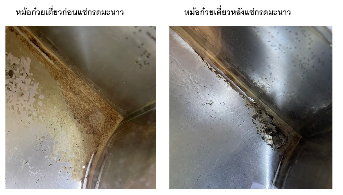 ซึ่งหม้อก๋วยเตี๋ยวที่อุดมไปด้วยโปรตีน สามารถทำให้เกิดตะกรัน (Fouling) ติดแน่นบริเวณก้นหม้อได้