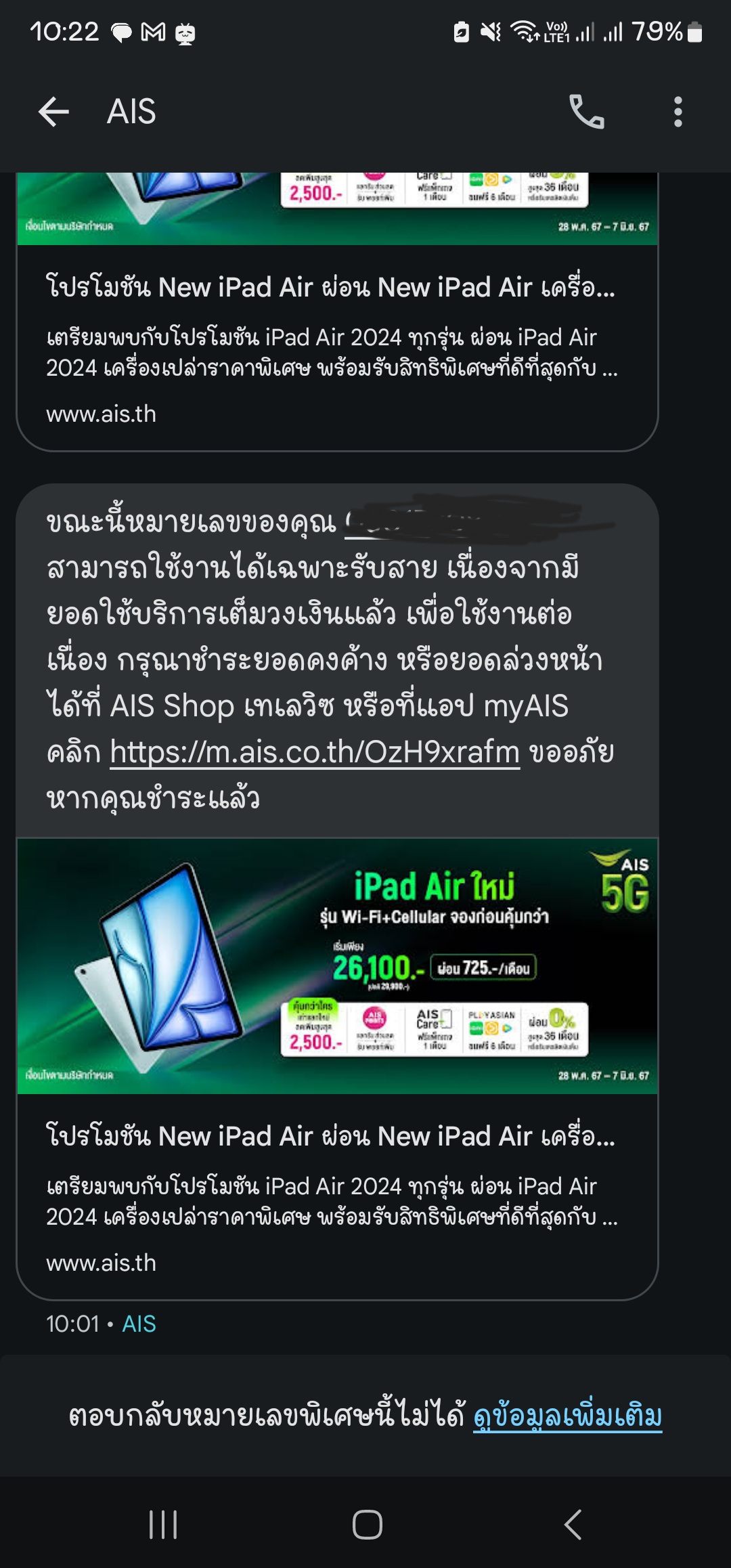 ค้างบิลAIS 3เดือนขอเปิดสัญญาณชั่วคราวได้มั้ย