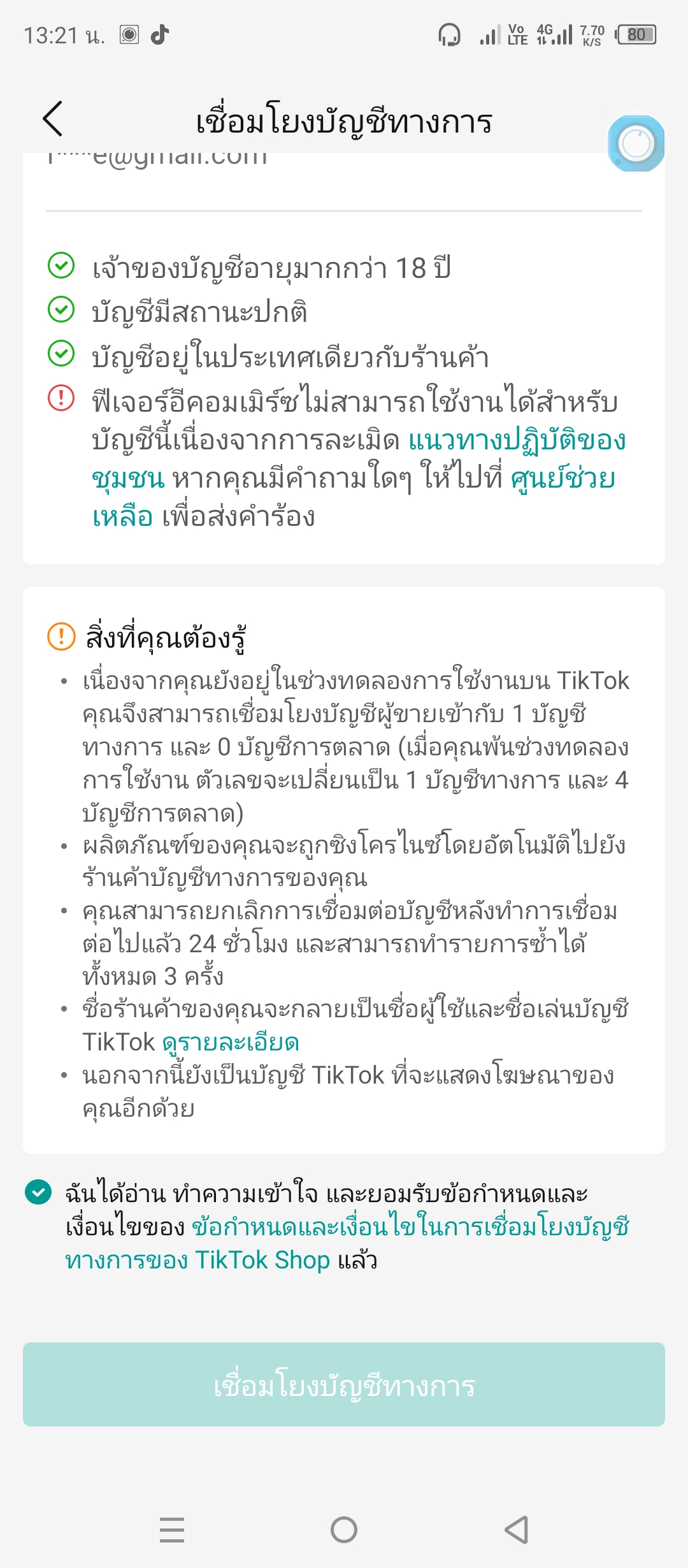 ตี๊กต๊อกช้อปทำไมผมเชื่อมไม่ได้ครับ