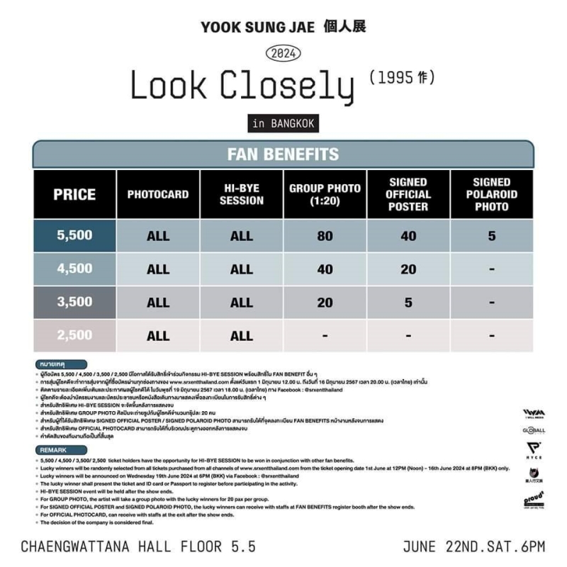 อูย..ยย!! พ่อคุณ พ่อทูลหัว กดล็อกวัน กดล็อกหัวใจเมโลดี้ขนาดนี้แล้ว ต้องมาสัมผัสเซอร์วิสแฟนแบบ 300% พร้อมเบเนฟิตดีเวอร์ กับ HI BYE ทุกที่นั่ง ด้วยตัวเองแล้ว!! “YOOK SUNG JAE 2024 Look Closely 1995 in BANGKOK” เปิดจำหน่ายบัตรพร้อมกัน ในวันเสาร์ ที่1 มิถุนายน 2567 ทาง