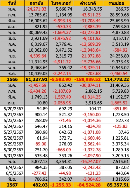 Sinthorn Summary 5/6/2567 : ต่างชาติขายสุทธิ -121.23 ลบ.