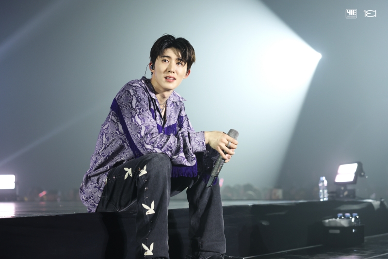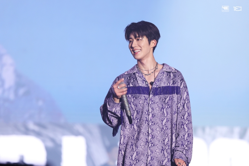 “ขอบคุณทุกคนมากเลยที่มาวันนี้นะครับ และเพื่อคอนเสิร์ตครั้งนี้ การพยายามของผมมันเป็นเรื่องแน่นอนอยู่แล้ว แต่ไม่ว่าจะเป็นสตาฟหรือไดเรกเตอร์ของพวกเรา แล้วก็พี่ๆ นักเต้น แล้วก็ดีเจ แล้วก็ทุกคนที่อยู่ตรงนี้ด้วยนะครับ ชื่นชมทุกคนเลย ปรบมือให้กับทุกคนหน่อยครับ”