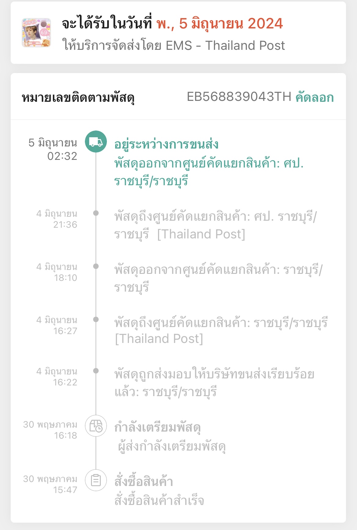 ไปรษณี ems ค้าง ราชบุรี 3 วันแล้วส่งตั้งแต่ 4 วันนี้ 7 4 วันยังไม่ขยับราชบุรีนี่ ems นะคะคิดว่าคนอื่นไม่รีบใช้หรอ