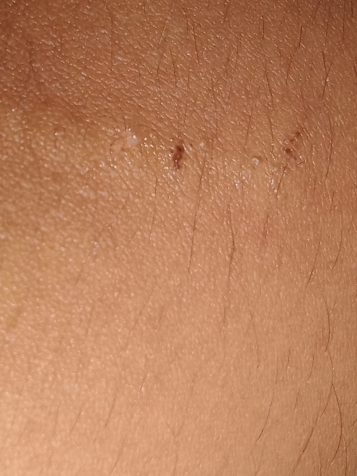 แบบนี้คือเป็นอะไรมั้ยคะ ตุ่มน้ำใสๆด้านในมีสีดำๆอยู่ด้วยค่ะ เป็นที่หัวเข่านะคะ