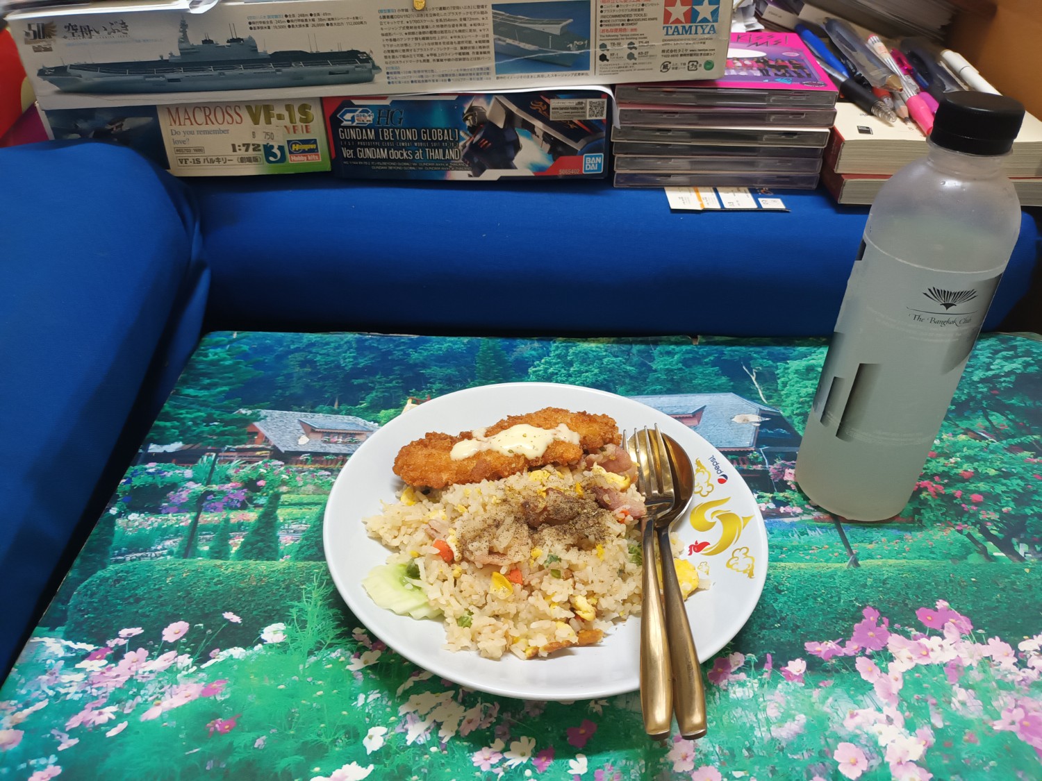 เครื่องไม่ครบ แต่ก็พอได้อยู่ค่ะ คุ้ยตู้เย็น เอาข้าวออกมาอุ่นร้อน ขนาดหนึ่งเสิร์ฟสำหรับเช้านี้ เอาไก่ออกมาอุ่นร้อน ถ้วยนี้หนอนฯไม่ได้ผัดเอง แต่ซื้อมาตั้งแต่เมื่อวันเสาร์ค่ะ เป็นเนื้อไก่+เลือ